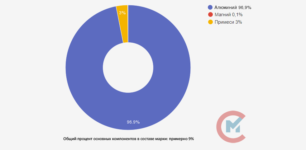 AB97 — это металлический сплав, основой которого является алюминий (Al), его содержание должно быть не менее 97%. Допустимое количество примесей определяется химическим составом.